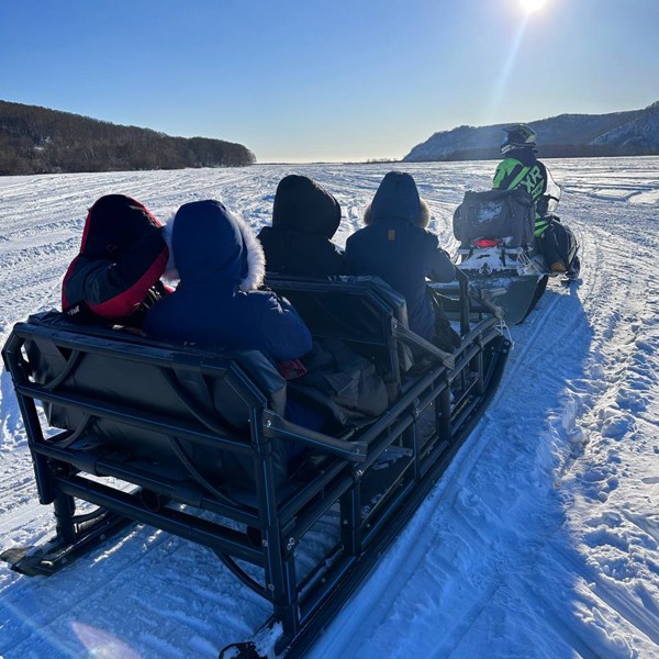 Авачинский перевал: поездка в нарте за снегоходом