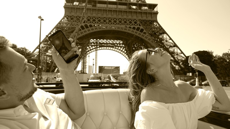 На фоне Эйфелевой башни