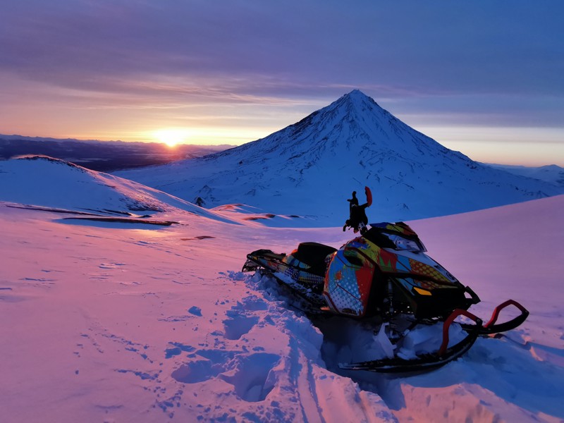 На санях за снегоходом — к Корякскому вулкану