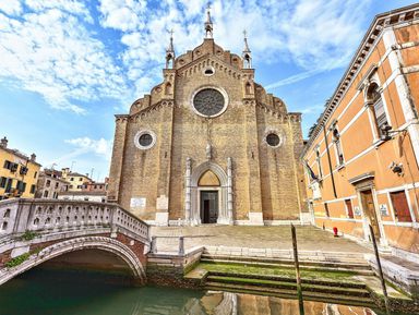 Мы зайдём в церковь Санта-Мария Ассунта. Я покажу необычное для Венеции убранство церкви, выполненное из белого и зелёного мрамора с вкраплениями...