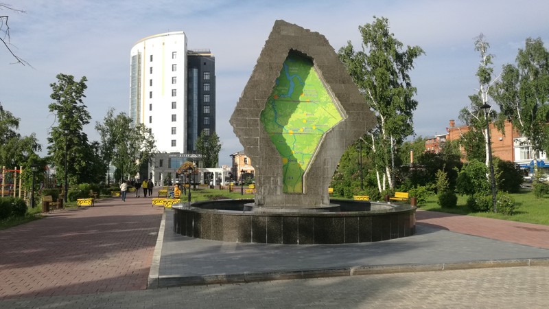 Площадь Борцов Революции. Дети соберут карту Тюменской области у живописного фонтана. Вы увидите первое среднее учебное заведение города и насладитесь панорамным видом на набережную, район Зареки...